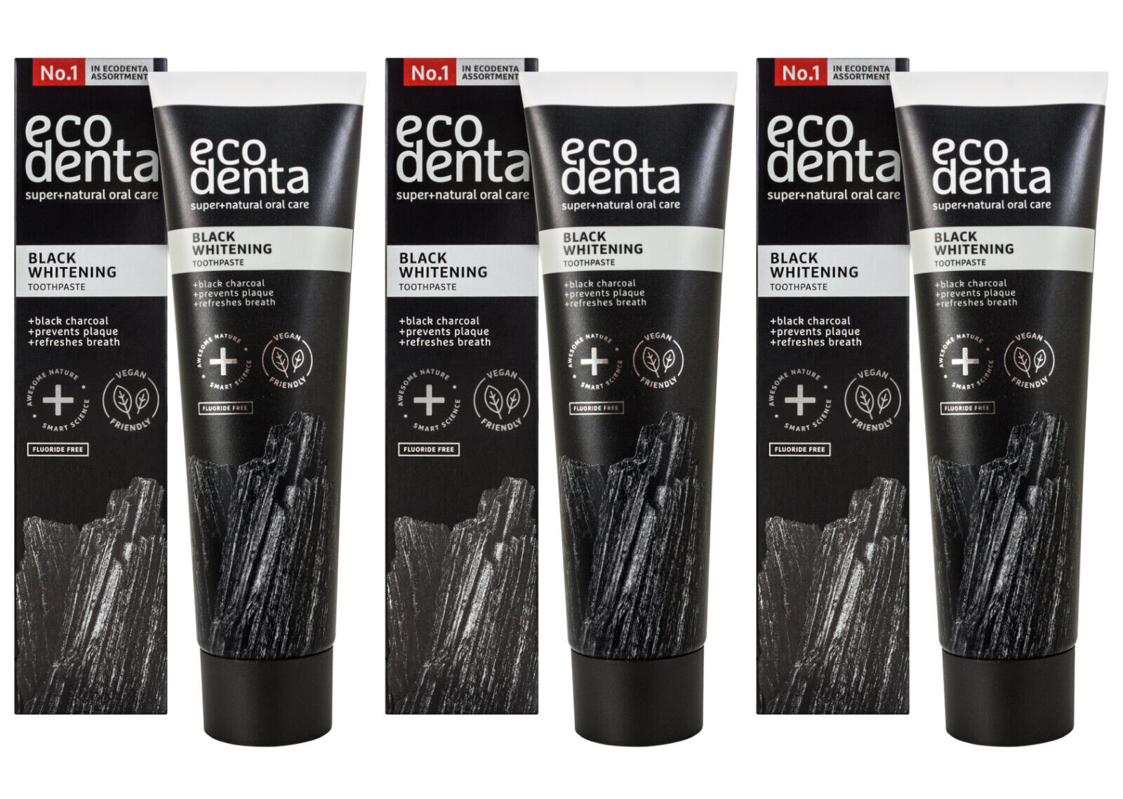 3 ECODENTA Super Natural Organic Black Whitening Charcoal & Teavigo Toothpaste