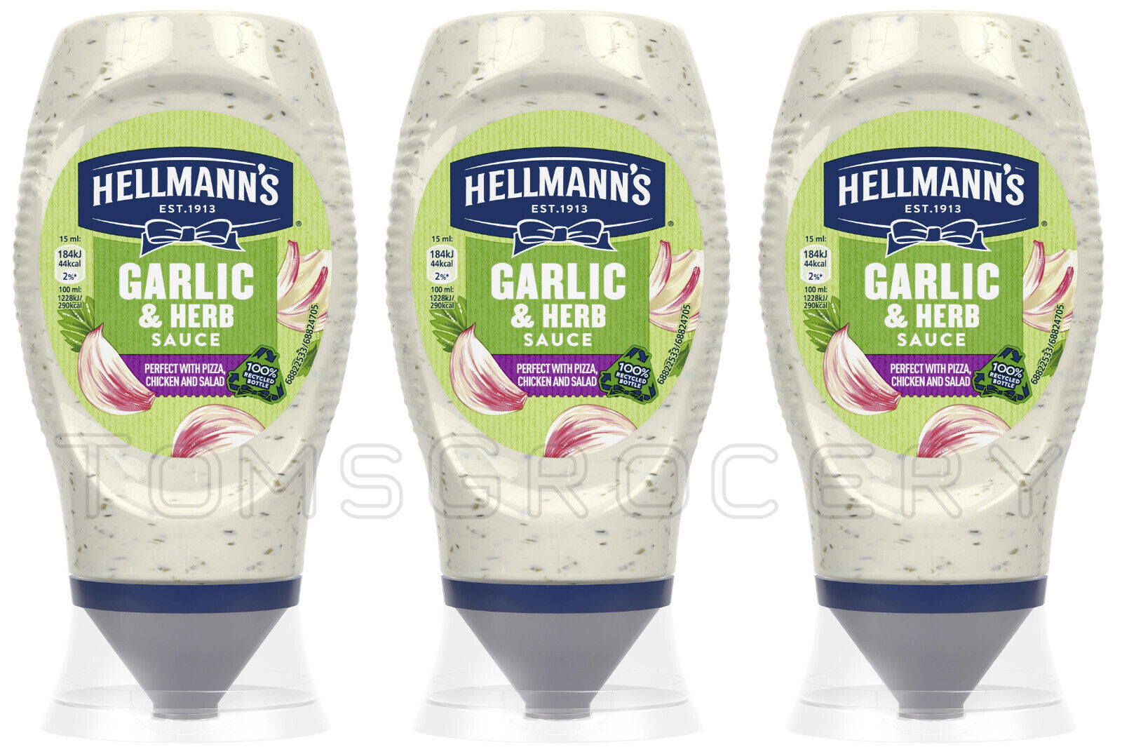 3 HELLMANNS GARILC & HERB Sauce Bottles 250ml 8.45oz