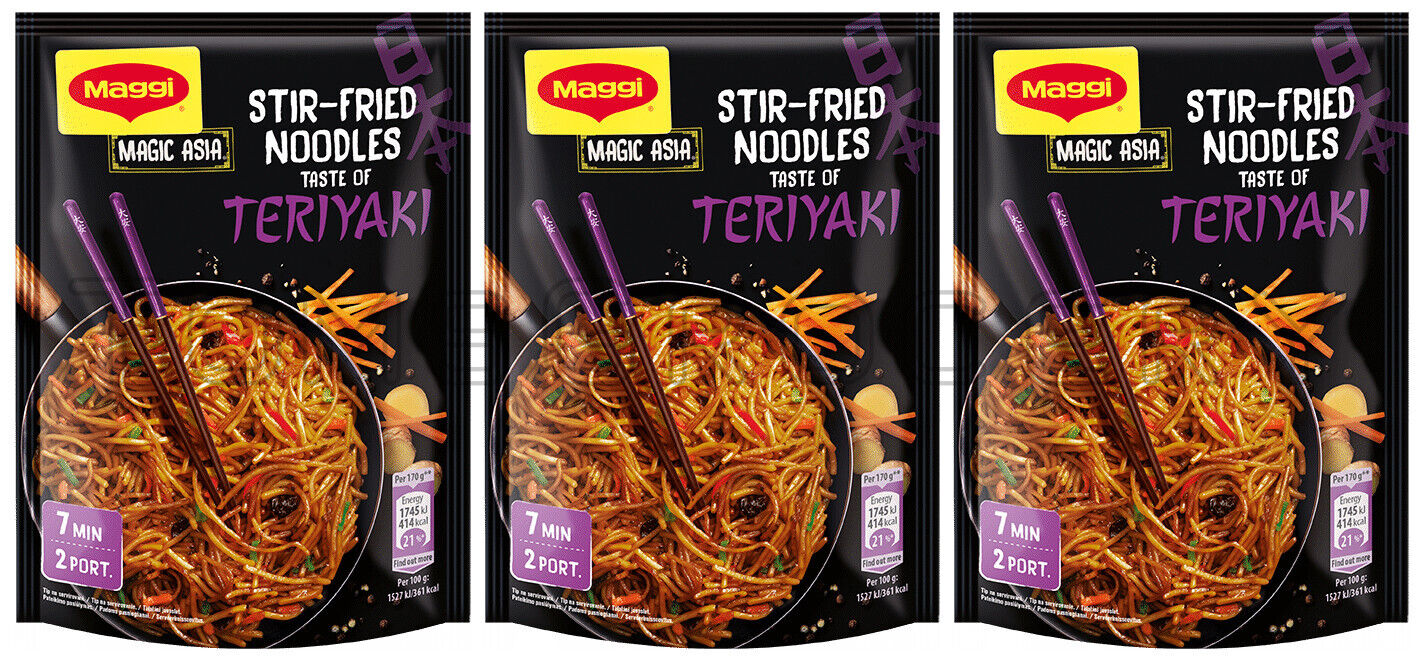 3 MAGGI ASIA TERIYAKI Flavor Stir-Fried Instant Noodles 130g 4.5oz
