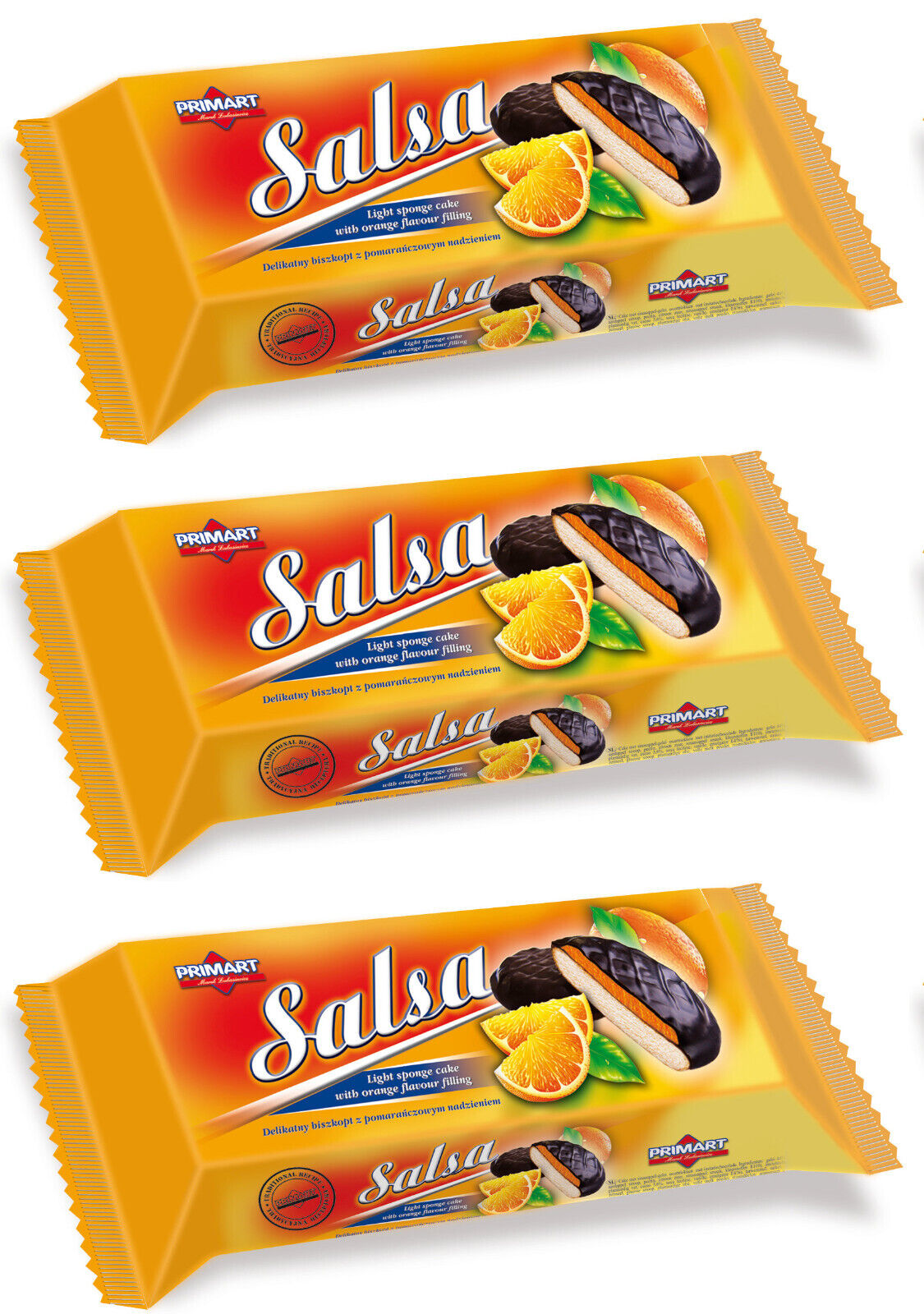 3 SALSA Sponge Cookies with Orange Jelly Filling & Chocolate Cover 130g 4.6oz