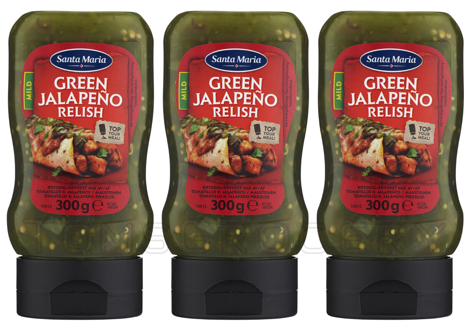 3 SANTA MARIA GREEN JALAPENO RELISH Topping Sauce Bottles 300g 10.5oz