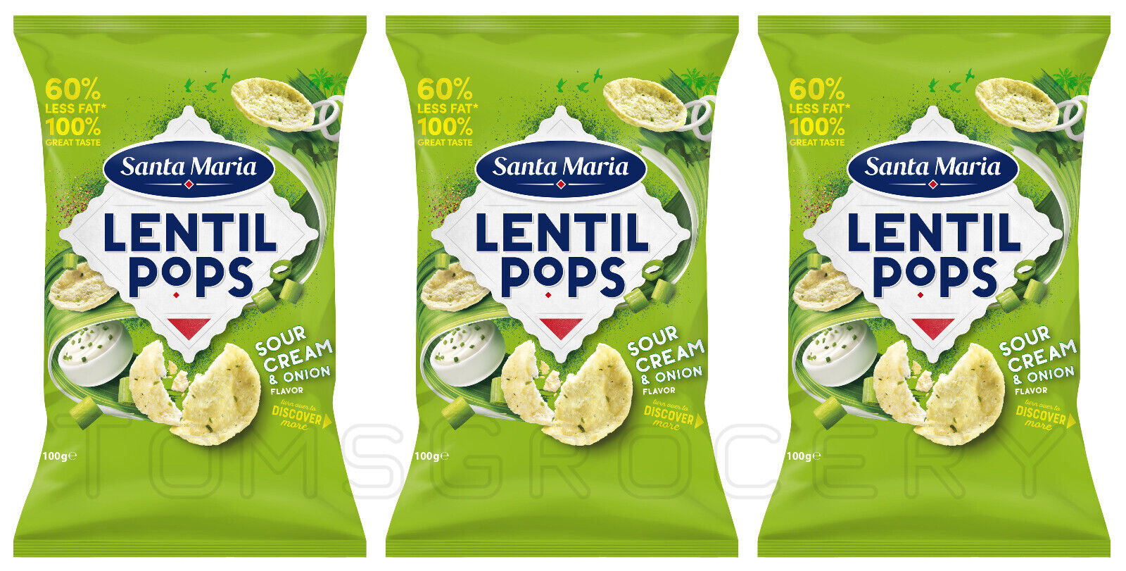 3 Santa Maria Lentil Pops Sour Cream & Onion Flavor Chips Low Fat 100g 3.5oz