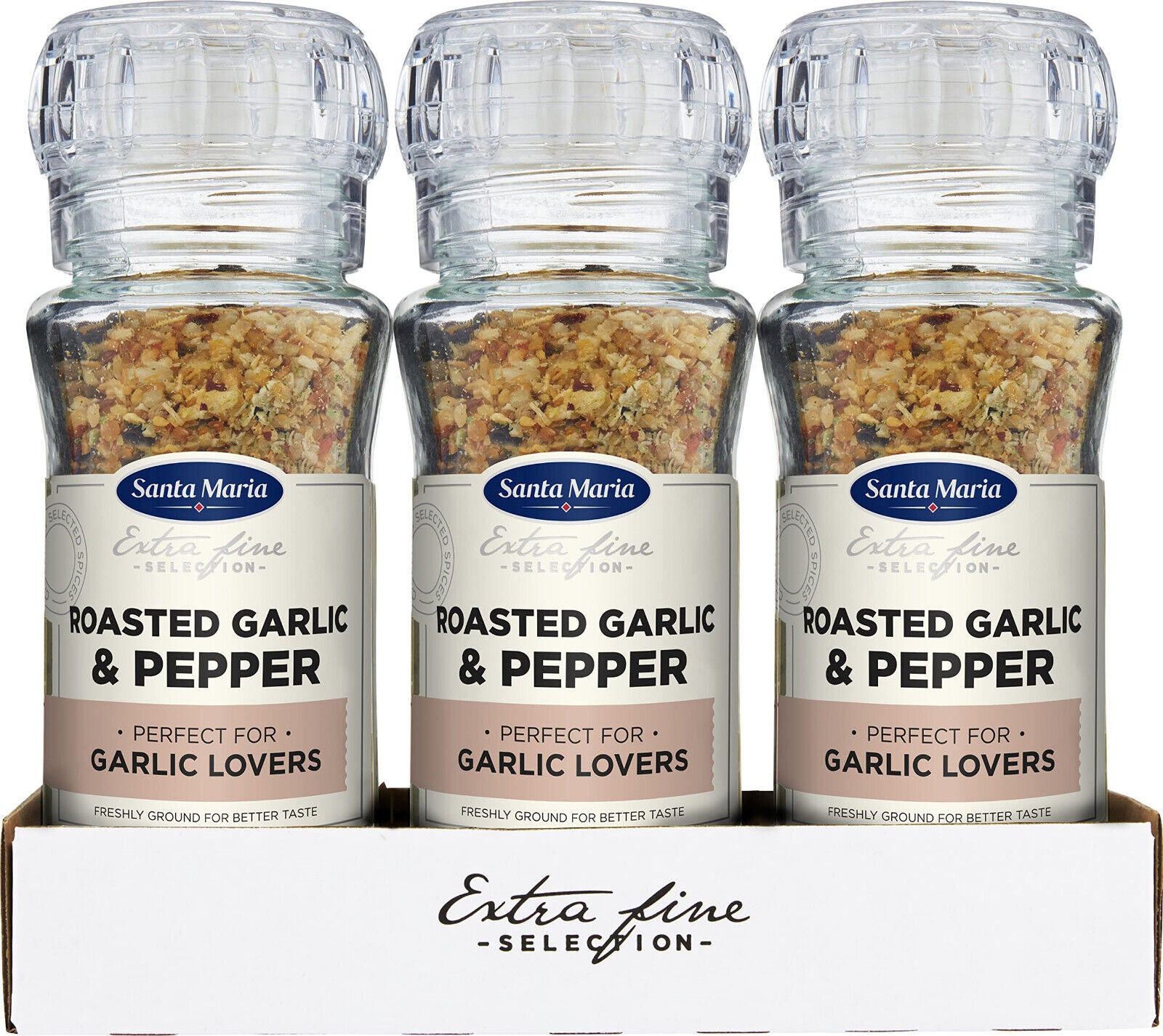 3 SANTA MARIA ROASTED GARLIC & PEPPER Spice Mix Grinder For Meat & Pasta 80g