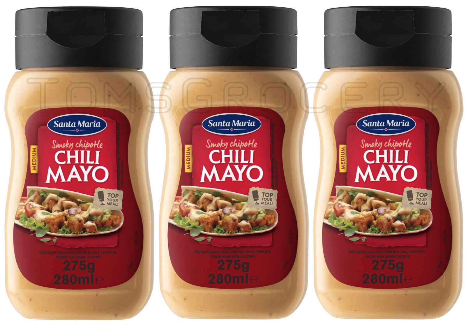 3 SANTA MARIA Smoky Chipotle Chili Mayo Topping Sauce Bottles 280ml