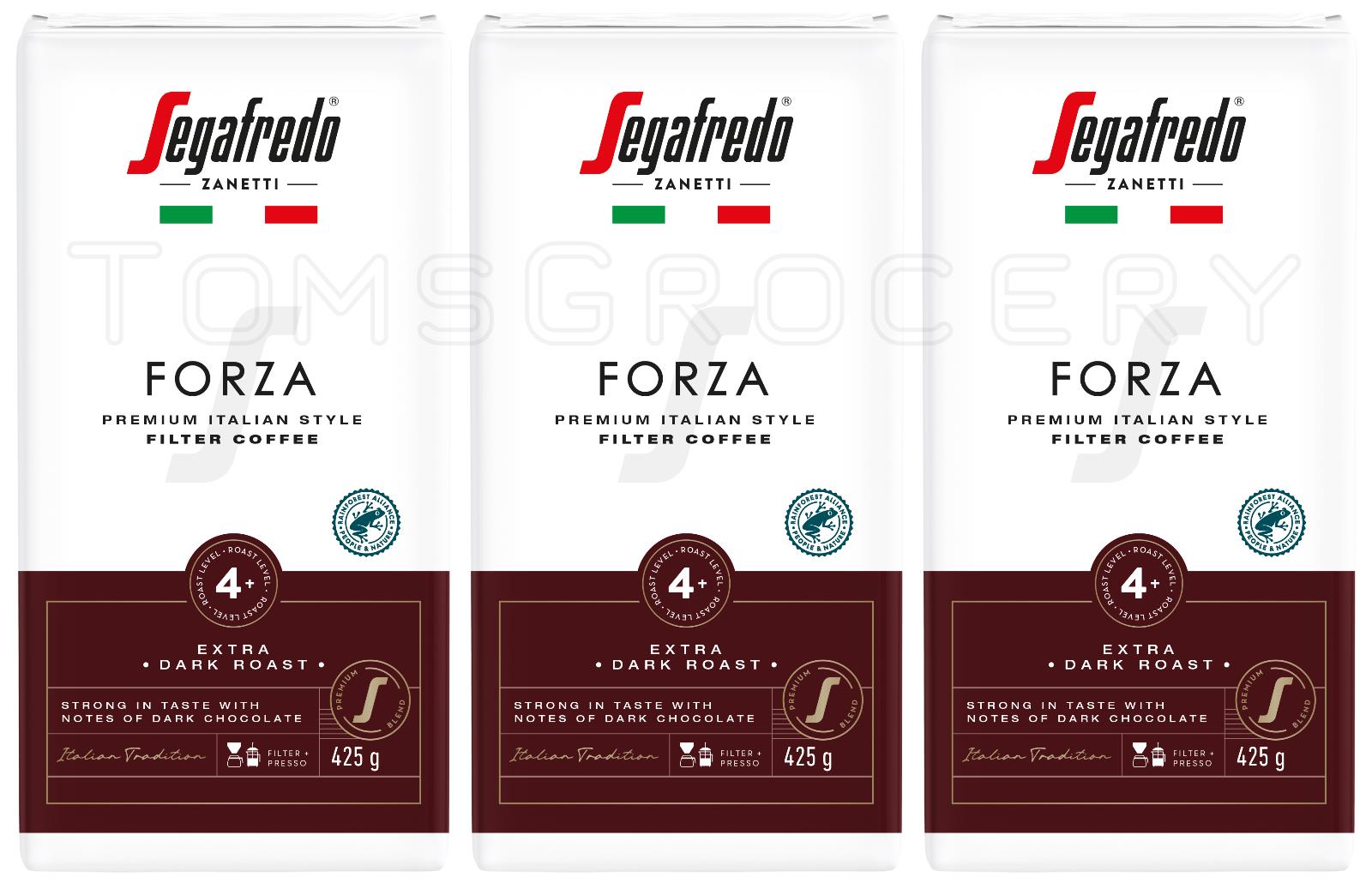 3 SEGAFREDO FORZA Premium Italian Style Filter Coffee Extra Dark Roast 425g 15oz