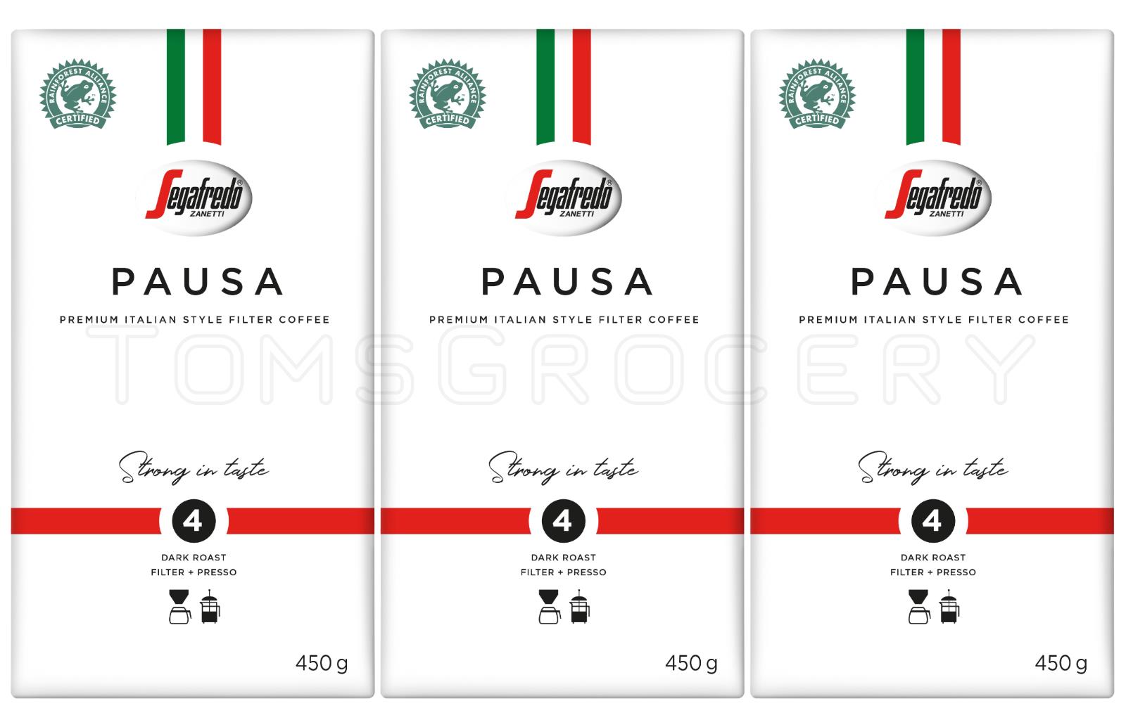 3 SEGAFREDO PAUSA Premium Italian Style Filter Coffee 450g 16oz