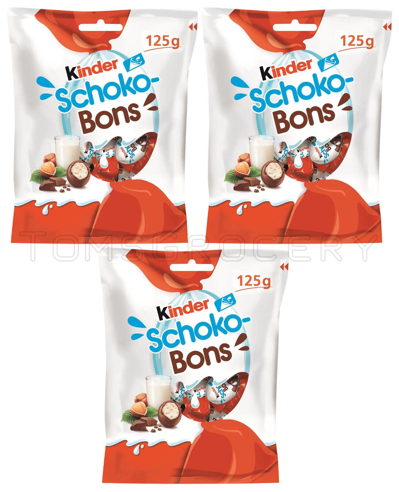 3 x KINDER SCHOKO BONS Milk Chocolate Candies Party Sweets 125g 4.4oz