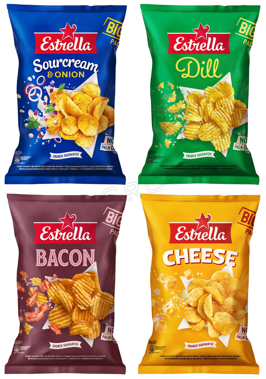 4 ESTRELLA POTATO CHIPS BUNDLE Flavor Mix European Snacks Variety 180g 6.3oz