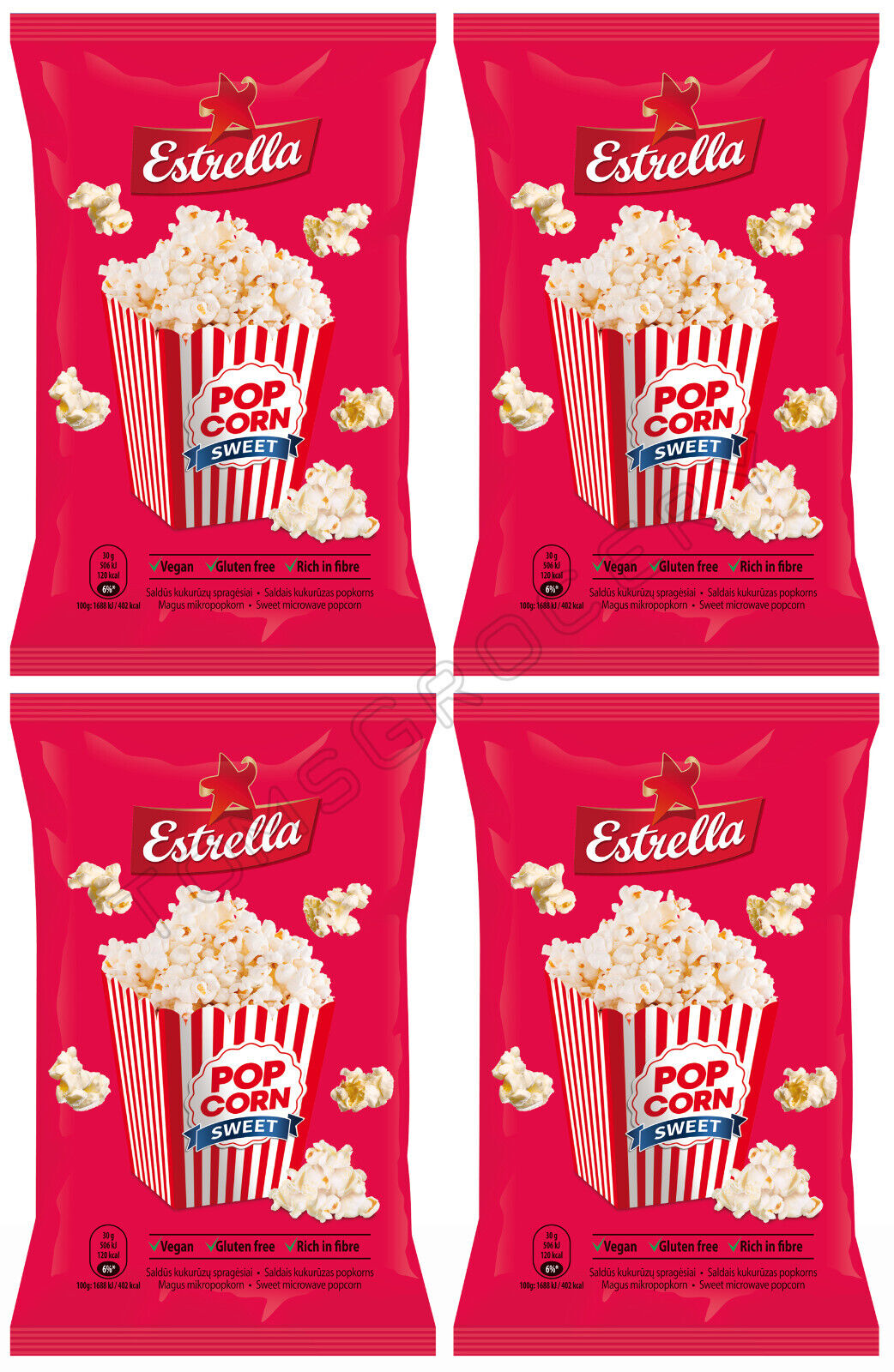 4 ESTRELLA SWEET POP CORN Snacks Microwave Ready Bags Vegan 90g 3.2oz