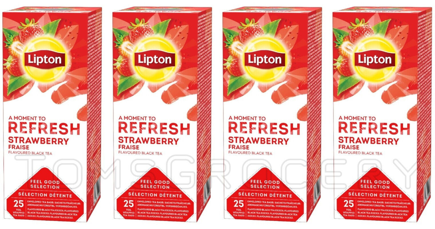4 LIPTON REFRESH STRAWBERRY Flavor Black Tea Boxes (100 servings)