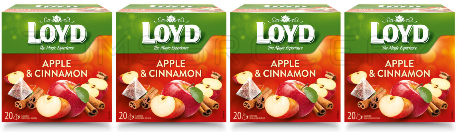 4 LOYD Apple & Cinnamon Flavored Herbal Infusion Tea Boxes (80 servings total)