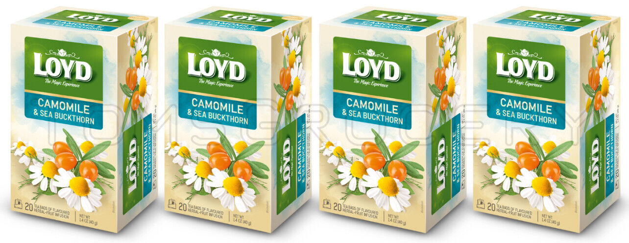 4 LOYD Camomile & Sea Buckthorn Flavored Herbal Tea Boxes (80 servings total)