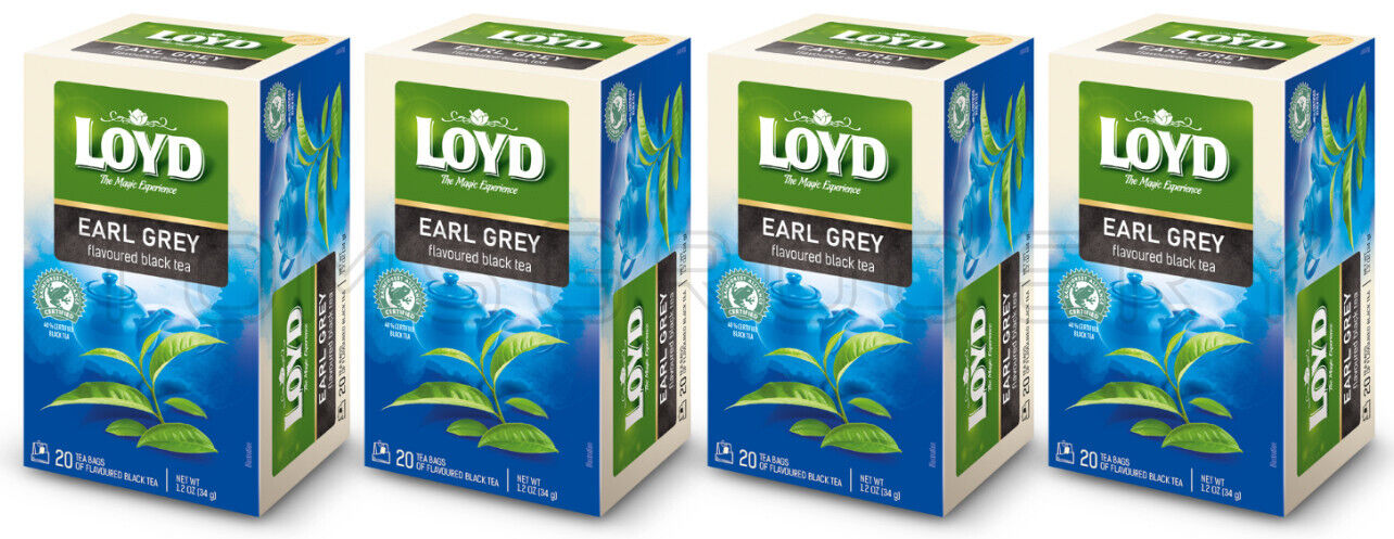 4 LOYD Earl Grey Flavored Black Tea 20 Envelope Boxes (80 servings total)