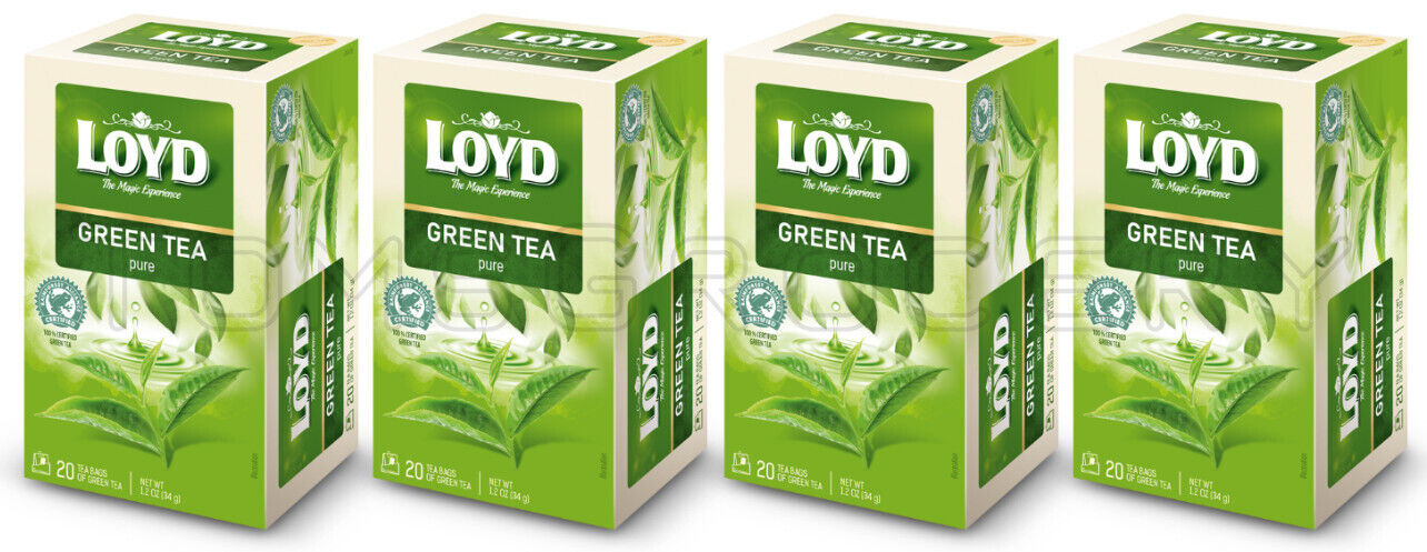 4 LOYD Pure Green Tea 20 Envelope Boxes (80 servings total)