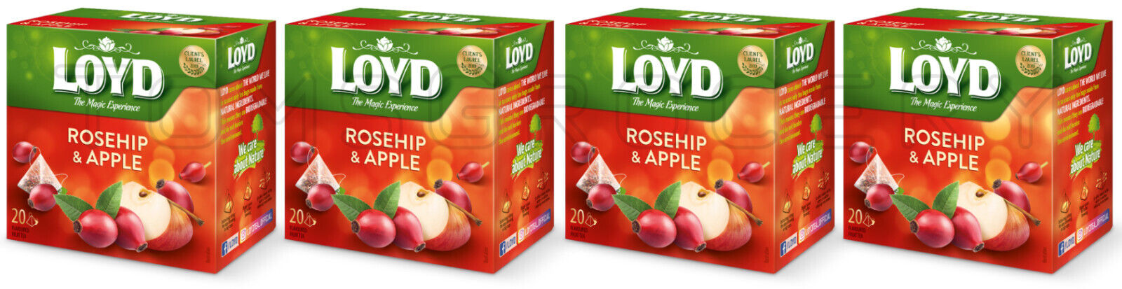 4 LOYD Rosehip & Apple Flavored Herbal Infusion Tea Boxes (80 servings total)