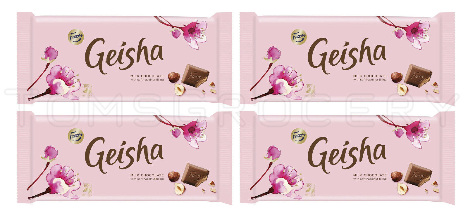 4 x FAZER GEISHA Milk Chocolate Bar with Soft Hazelnut Filling 100g 3.5oz