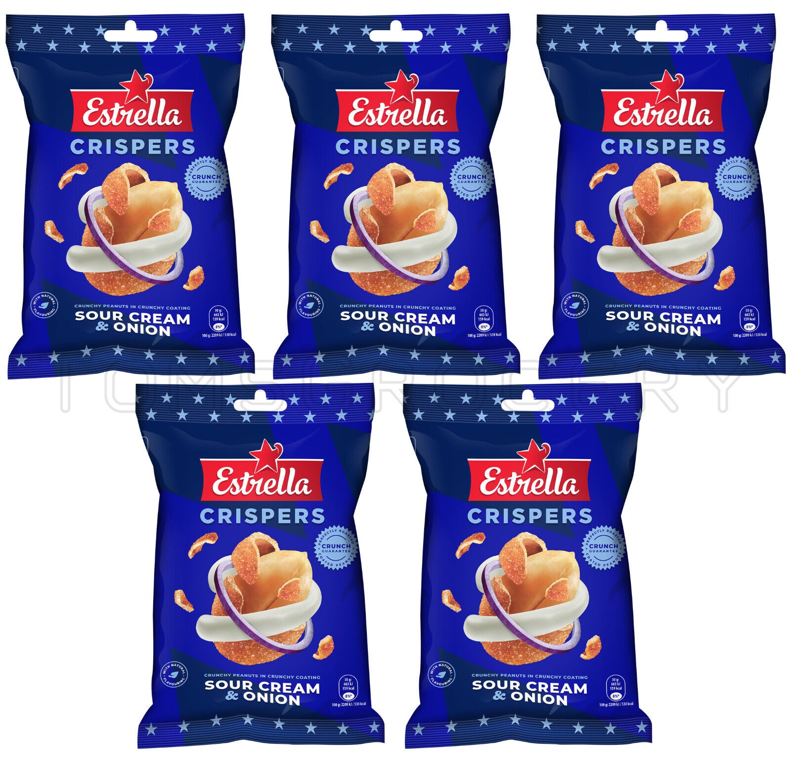 5 ESTRELLA CRISPERS Sour Cream & Onion Flavor Crunchy Coated Peanuts Snacks 140g