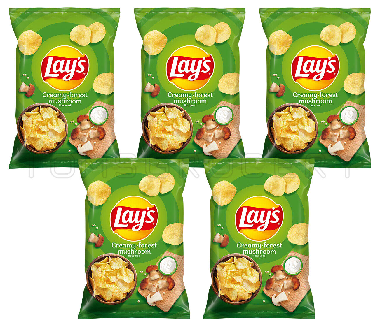5 LAYS Creamy Forest Mushroom Flavor Potato Chips Crisps Snacks 130g 4.6oz