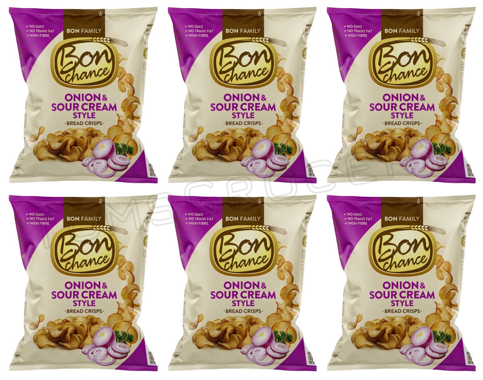6 BON CHANCE ONION & SOUR CREAM Flavor Baked Bread Crisps European Snacks 240g