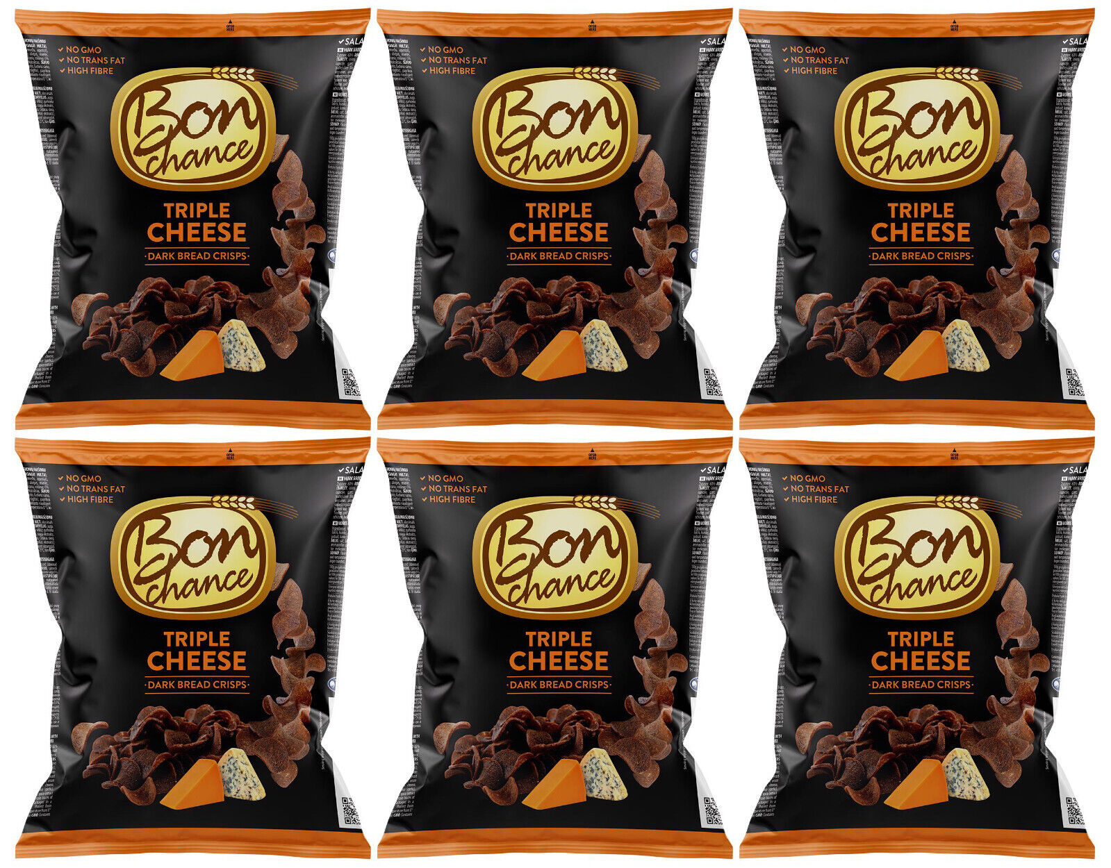6 BON CHANCE TRIPLE CHEESE Flavor Baked Dark Bread Crisps Snacks Bags 120g 4.2oz