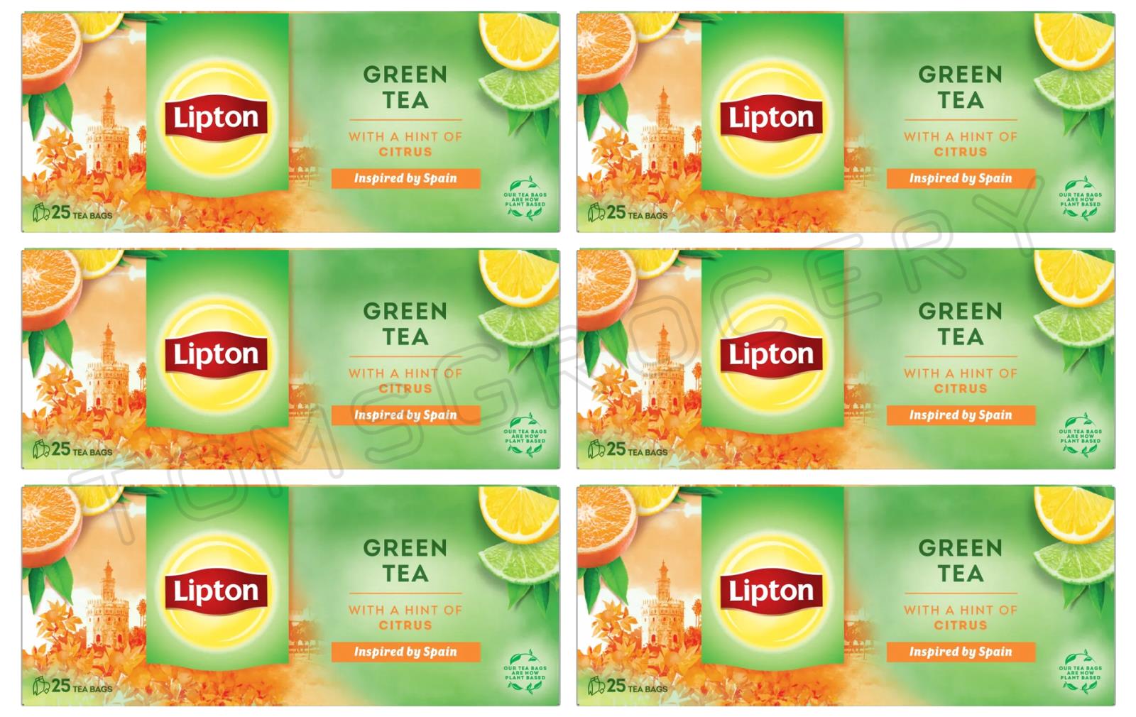 6 LIPTON CITRUS Flavored Green Tea Lemon, Lime & Orange Flavor 25 Teabags Boxes