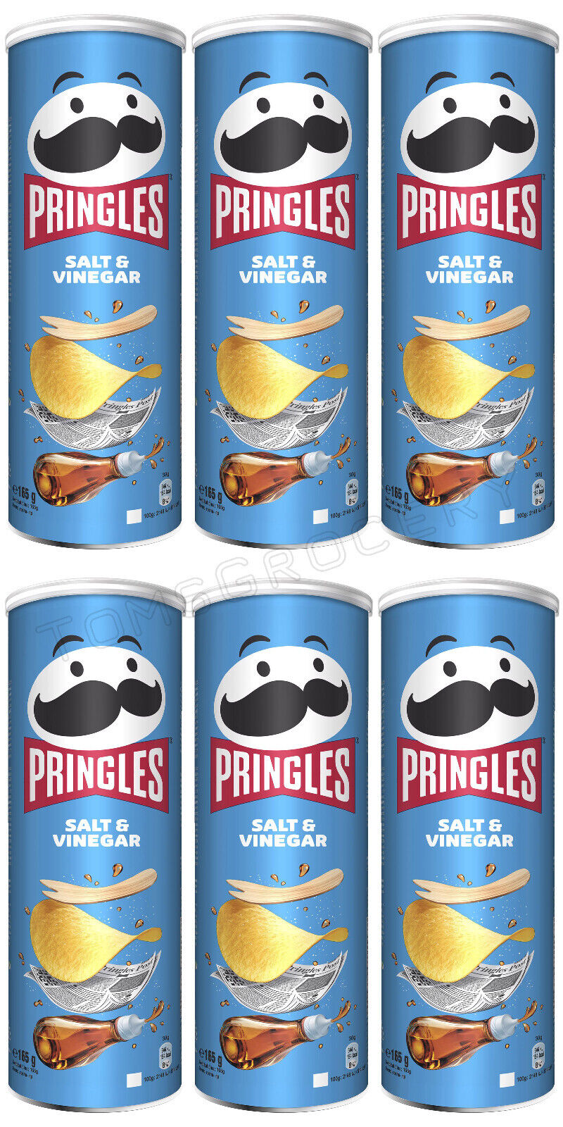 6 PRINGLES SALT & VINEGAR Flavor Potato Chips Snacks Crisps Full Tube 165g 5.8oz