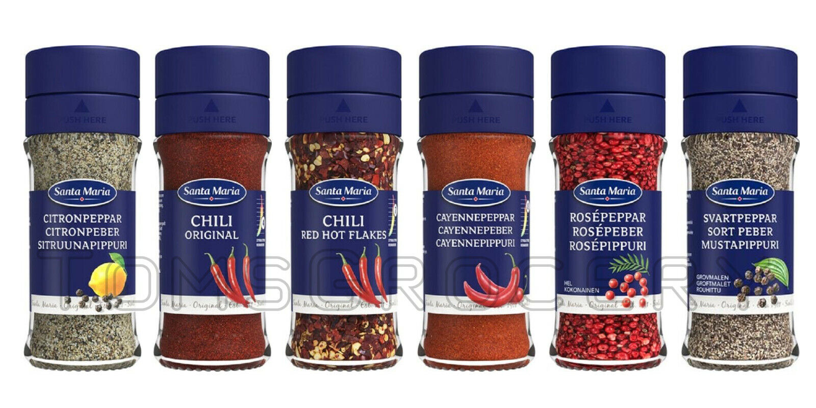 6 x Chili Pepper Spice Seasoning Mix SANTA MARIA Glass Bottles Set