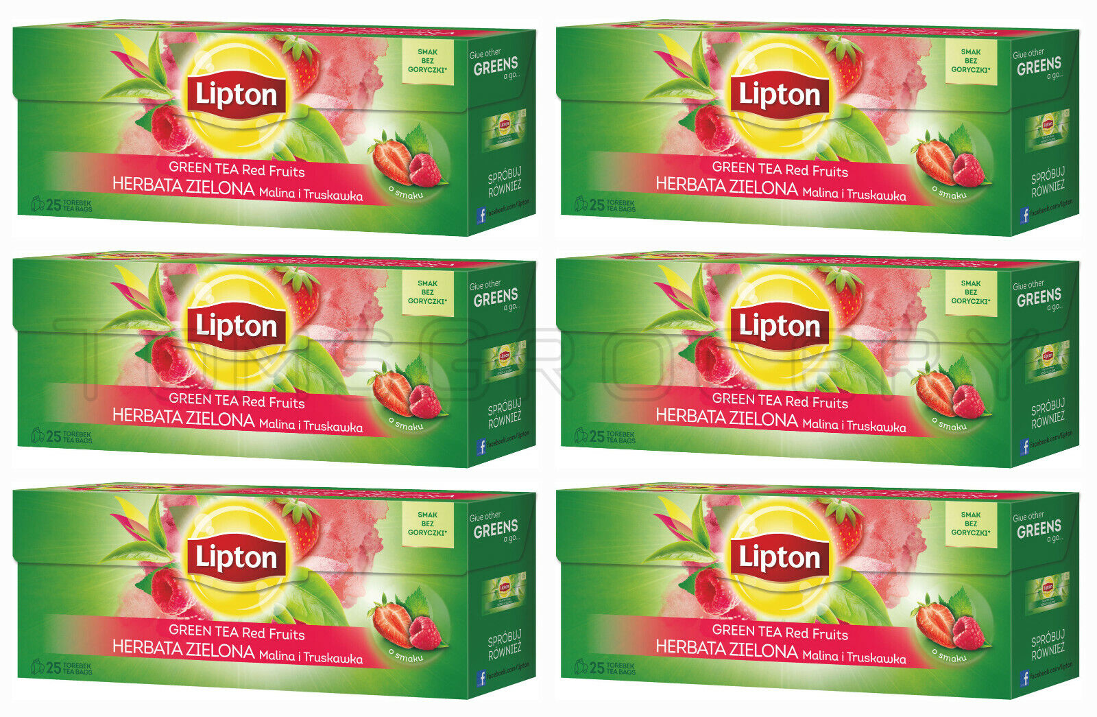 6 x Lipton Green Tea Red Fruits Strawberry & Raspberry Flavor 25 Teabags