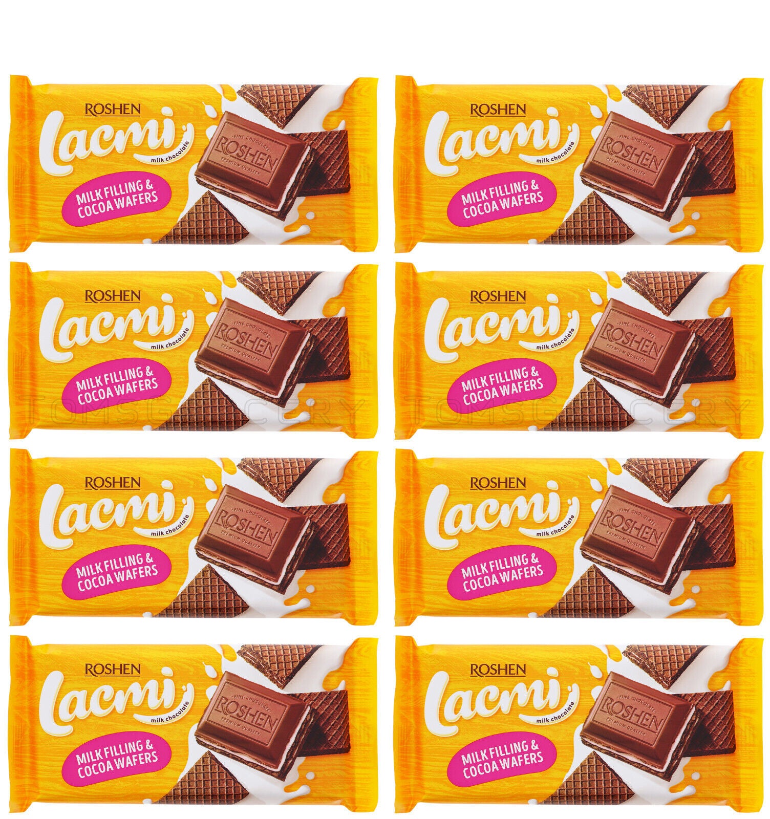 8 ROSHEN LACMI Chocolate Bars with Milk & Wafer Filling Ukrainian Sweets 90g