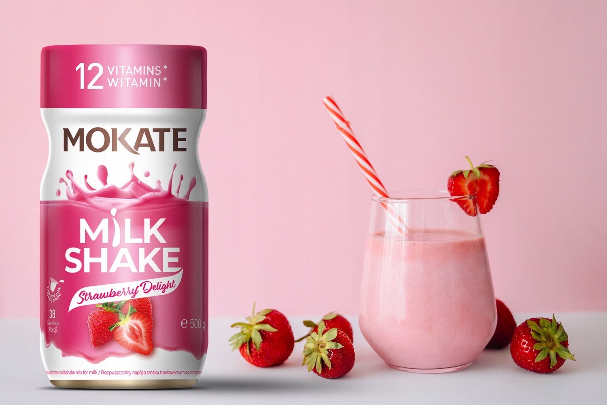 MOKATE MILK SHAKE Mix for Milk Strawberry Delight Flavor 500g 17.6oz
