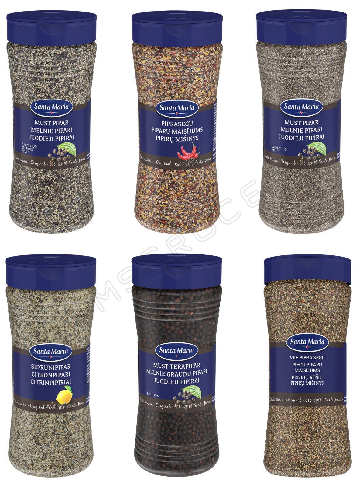 SANTA MARIA Pepper Variety Peppers Mix Whole Tellicherry Lemon XL Jars
